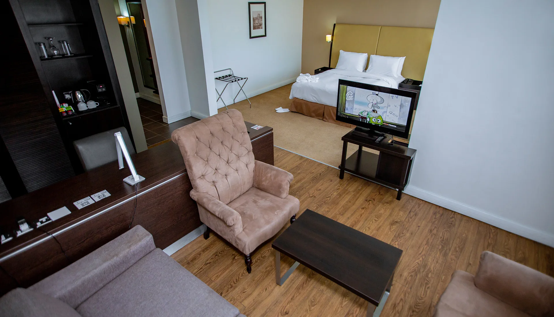 Our Junior Suites provides our guests a quiet and peaceful ambience for longer stays, or for a night or weekend getaway. The suites are furnished with a king size bed and include a spacious living room for lounging.